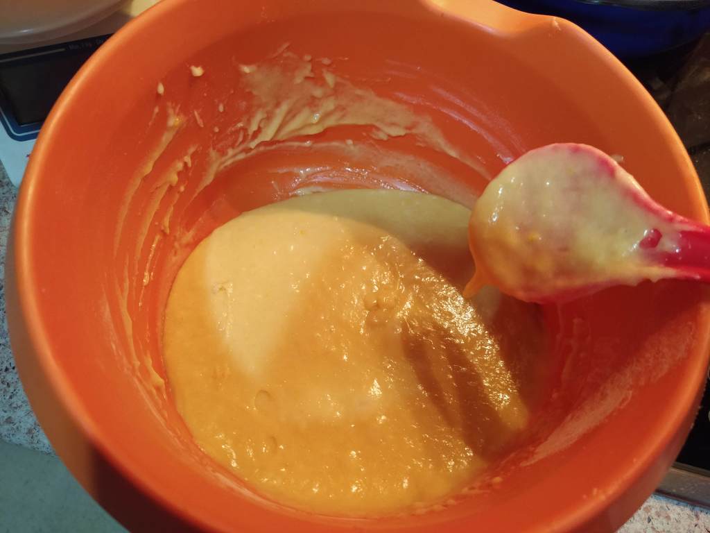 Precalienta el horno a unos 180 grados. Yo le he puesto calor arriba y abajo, y la bandeja bajita.
