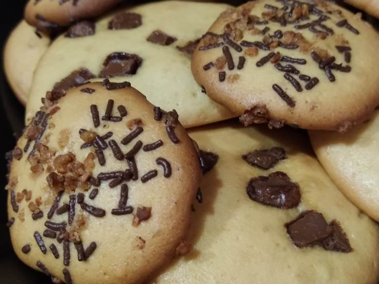Las galletas se pueden degustar en cualquier momento, ya sea en el desayuno o merienda, acompañando a un café… Te voy a proponer esta receta que me dió en una ocasión mi amigo Francisco Javier y que él realizó sin lactosa ya que utilizó chocolate negro puro.