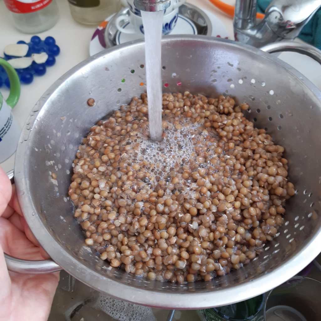 Para comenzar tienes que poner las lentejas en remojo durante media hora aproximada. Luego las escurres.