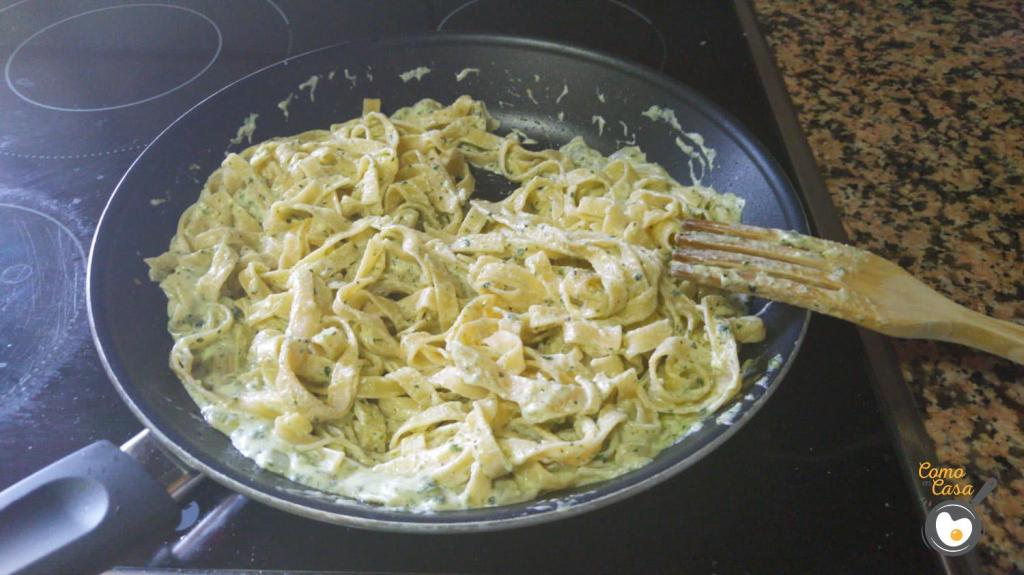 El último paso consiste en mezclar esta salsa con los tallarines.