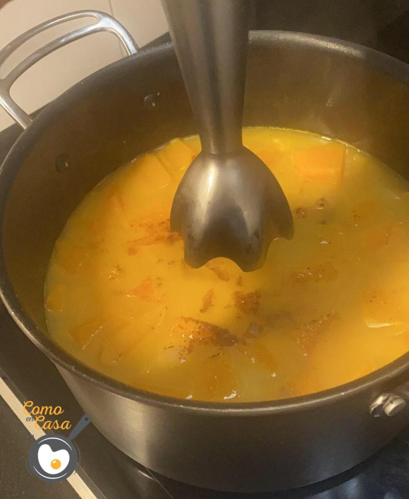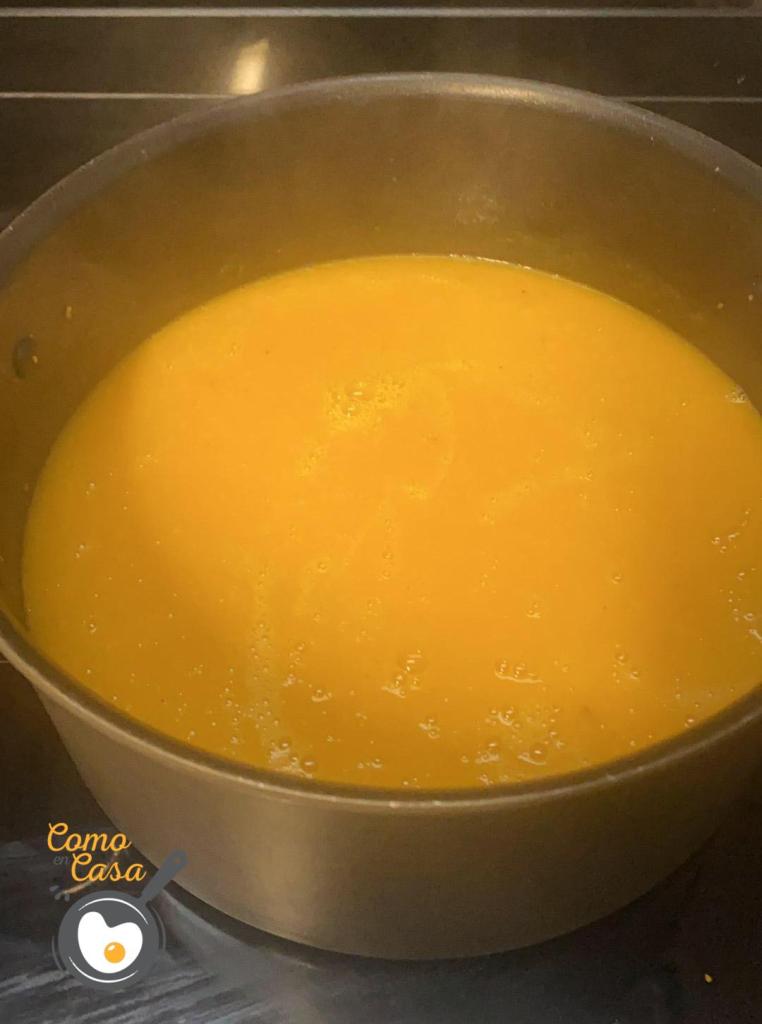 Deja cocinar un par de minutos y luego pasa la varilla hasta conseguir el espesor deseado.