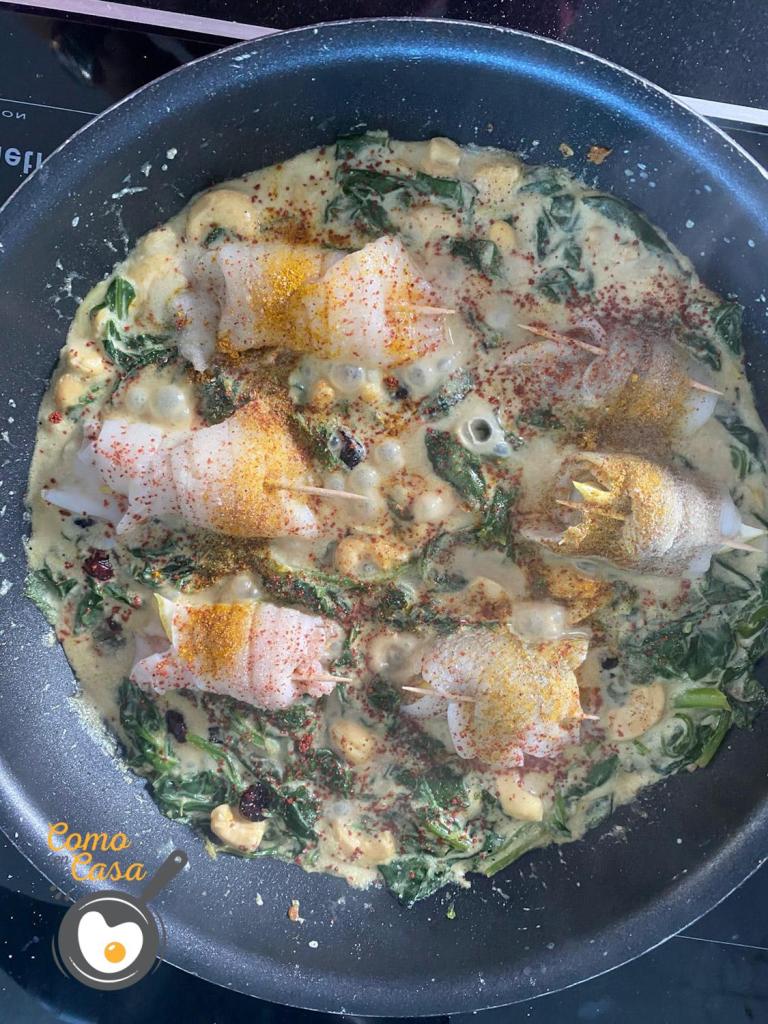 A continuación échale la leche de coco hasta cubrir las espinacas.