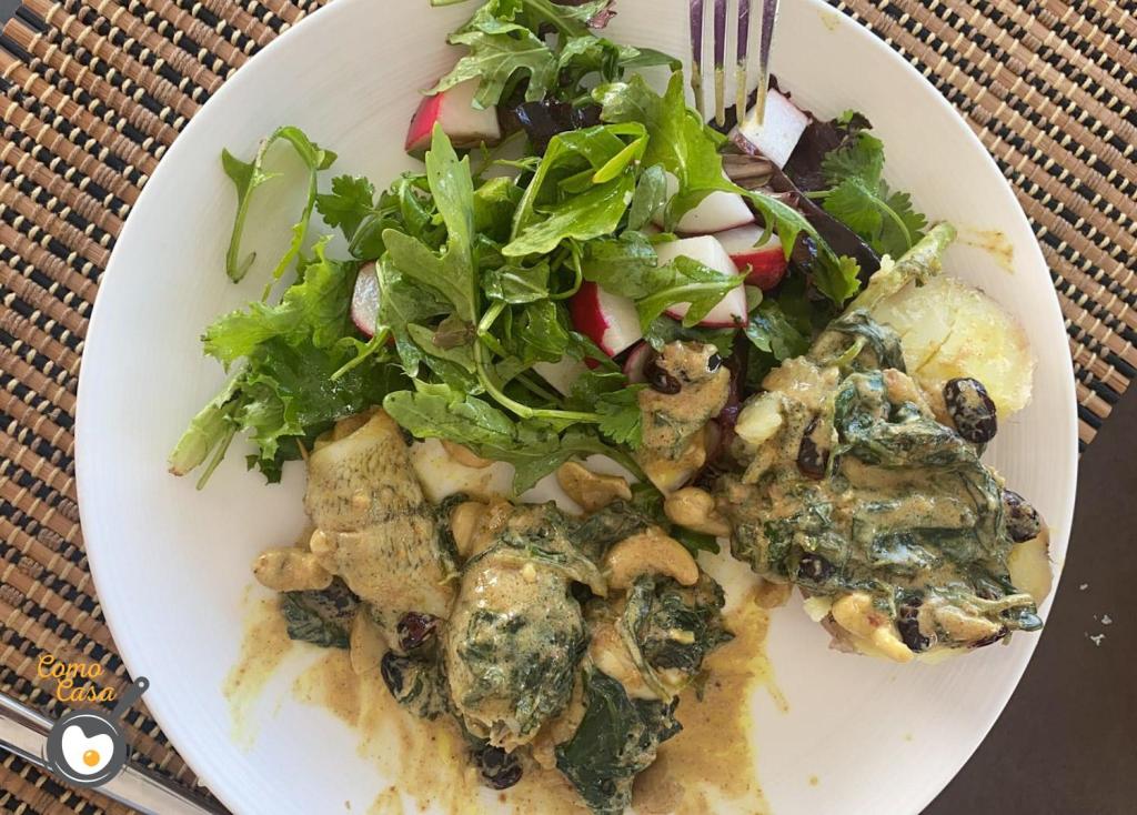 La receta que te traigo a continuación es un ejemplo de lo que es sacar una receta espectacular aprovechando lo que tengo en la nevera. Eso le paso a prima Olga el otro día y el resultado fue un plato de pescado, verduras y frutos secos, con una mezcla de especias que le dan ese gusto particular y único.