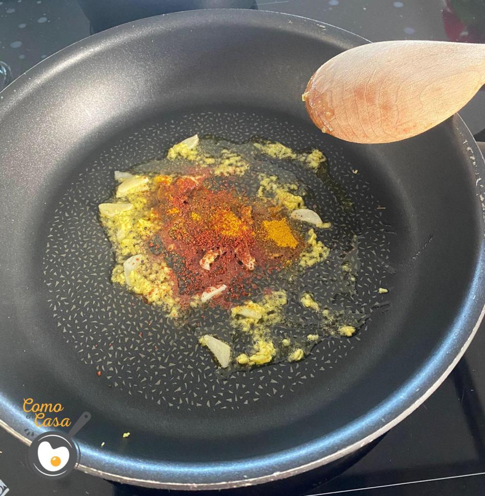 Añádele curry, sal y pimienta y los dejas cocinar hasta que estén bien cocidos.