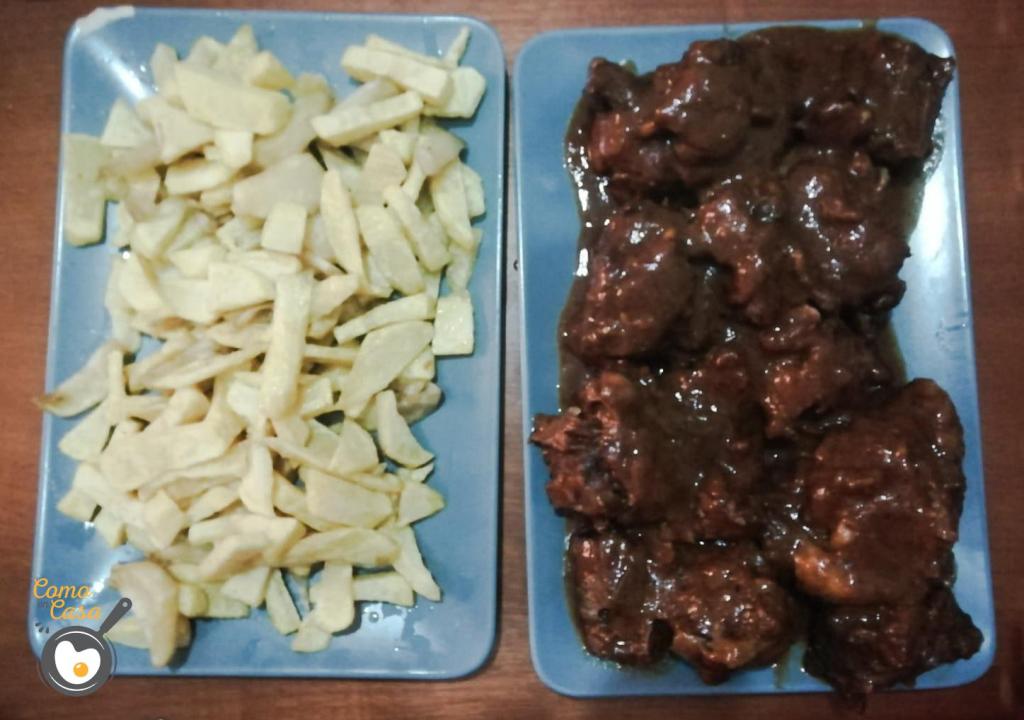 ¡Y ya está!. Aparta la carne y acompáñala con patatas fritas. ¡Está para morir de rica!.